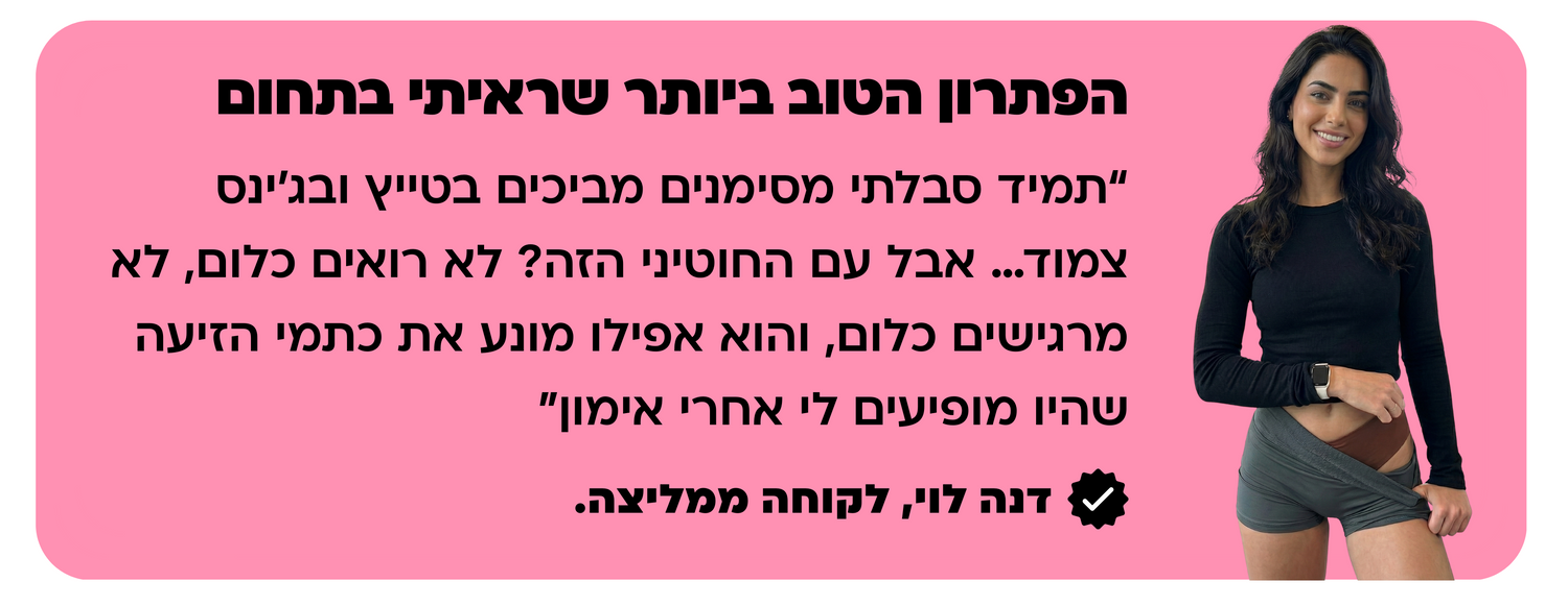 *אלו רק חלק מהמנתונים שאספנו לכם ממחקר שעשינו עם לקוחות שהשתמשו בתחתונים שלנו, מדורג 4.8/5 ע״י אלפי לקוחות.